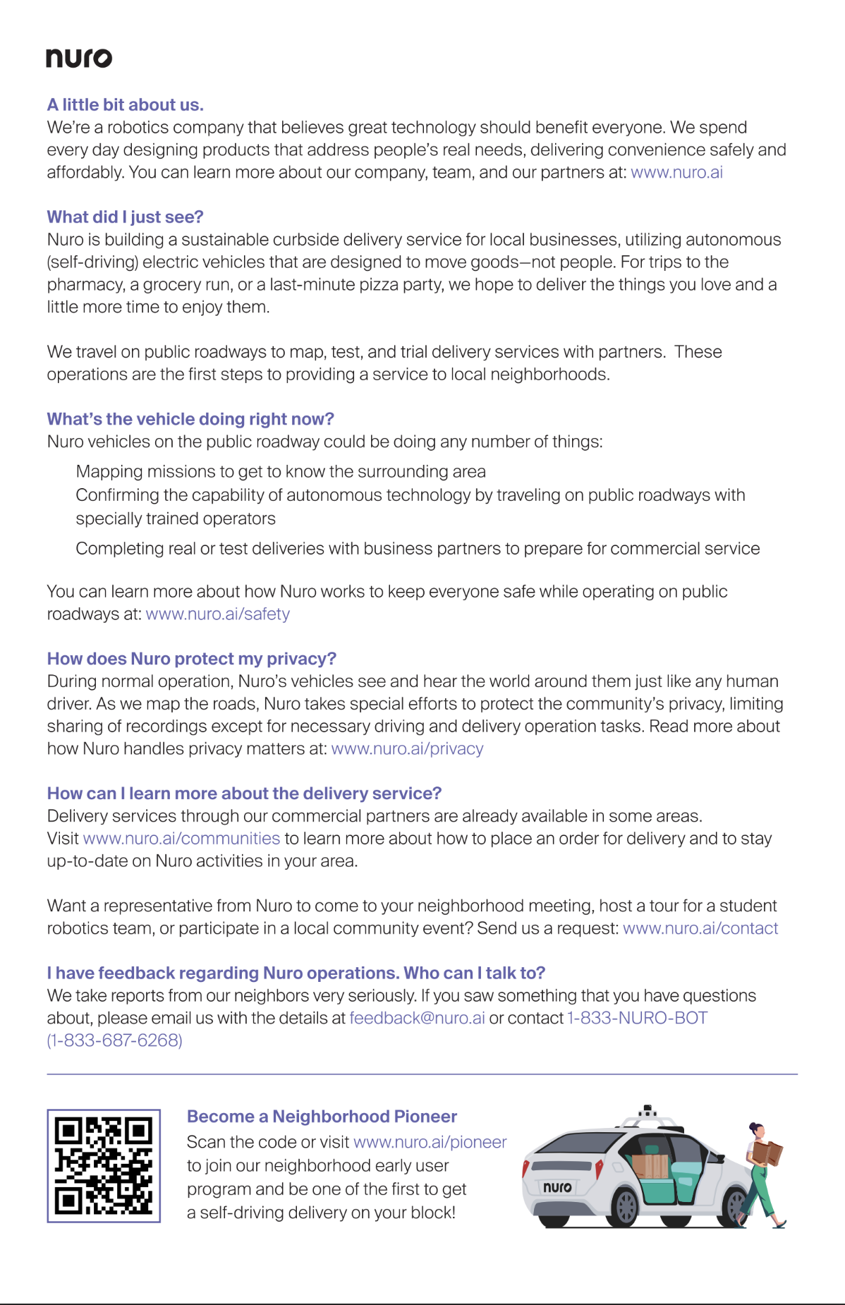 Nuro launched a public safety awareness campaign to introduce its autonomous vehicle technology to communities in cities like San Francisco, Los Angeles, and Houston. A key component of the campaign was ensuring messaging was accessible to diverse audiences.