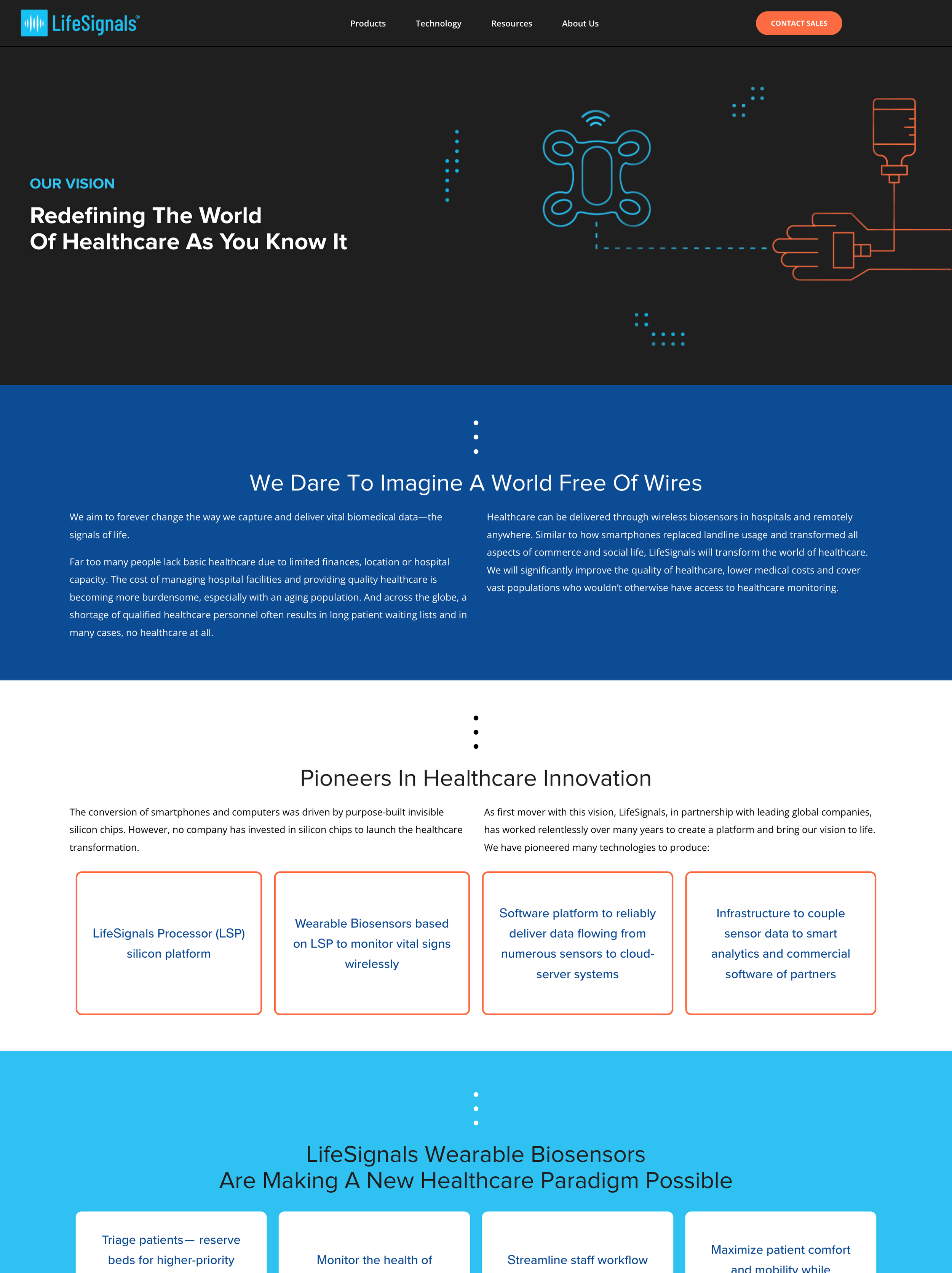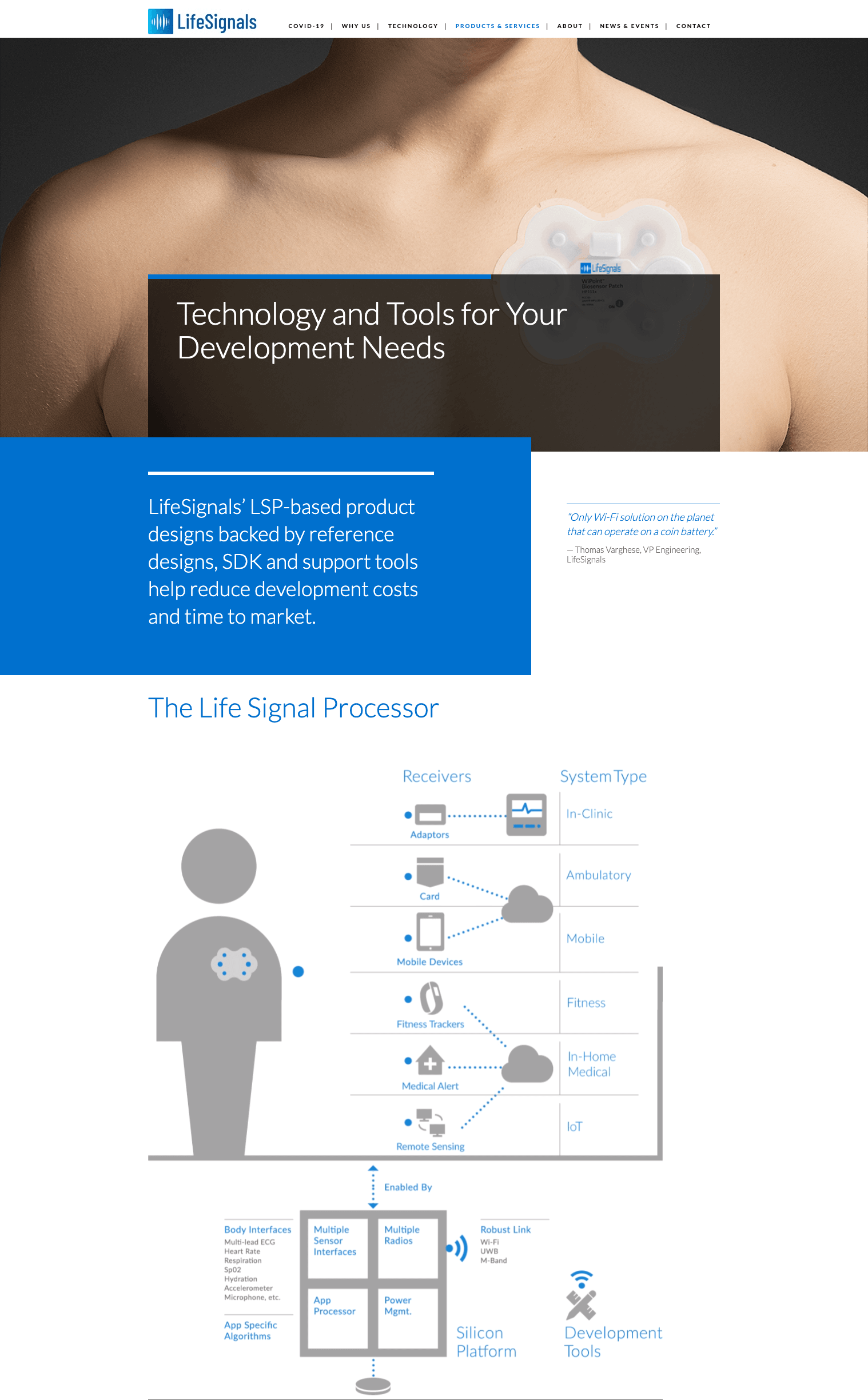 Medical-grade biosensor company LifeSignals was at the start of a massive business expansion in the Spring of 2020, and it needed a new website to meet its business objectives—a destination to help generate leads, secure investors, roll out new devices, provide patient information, and share company news.