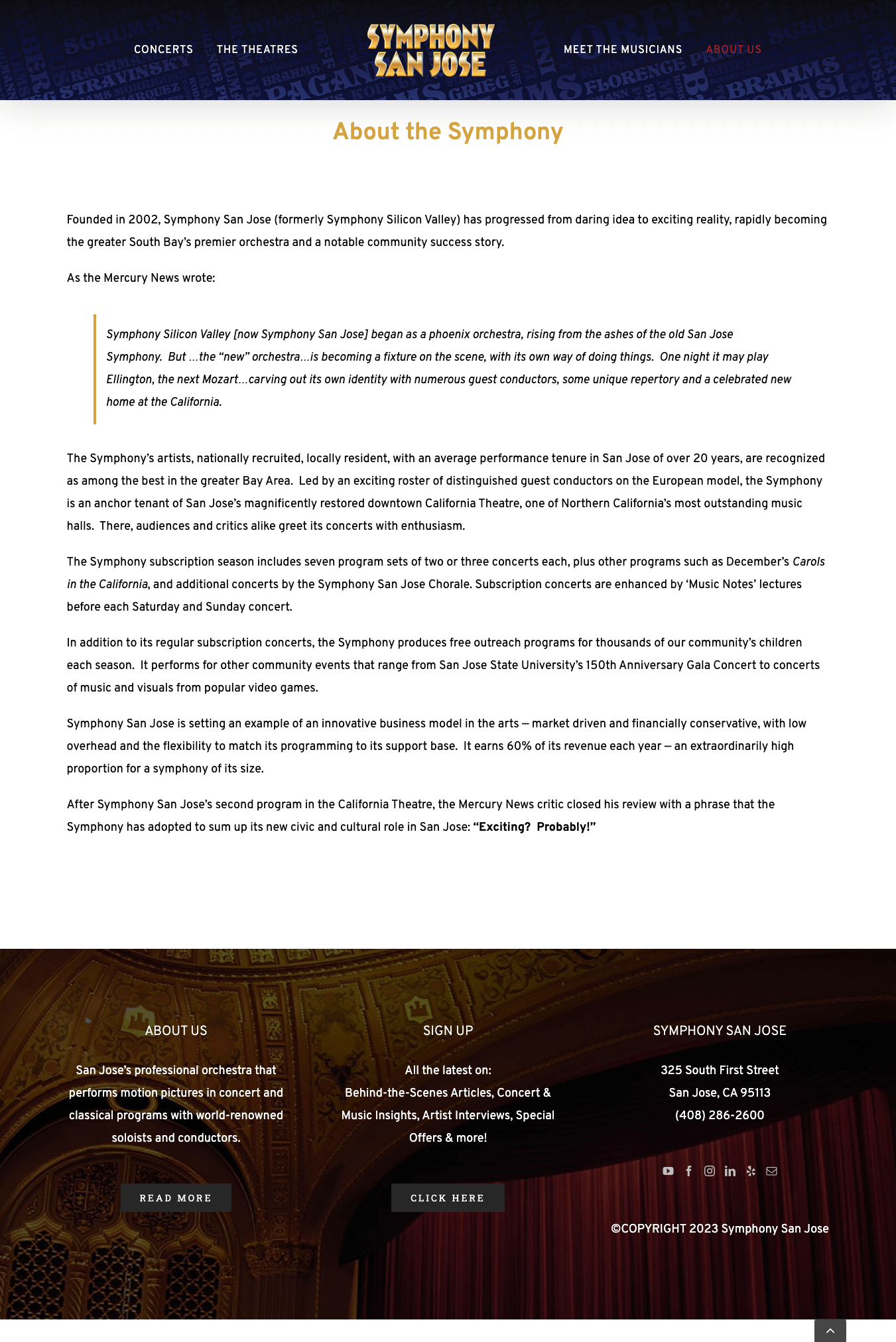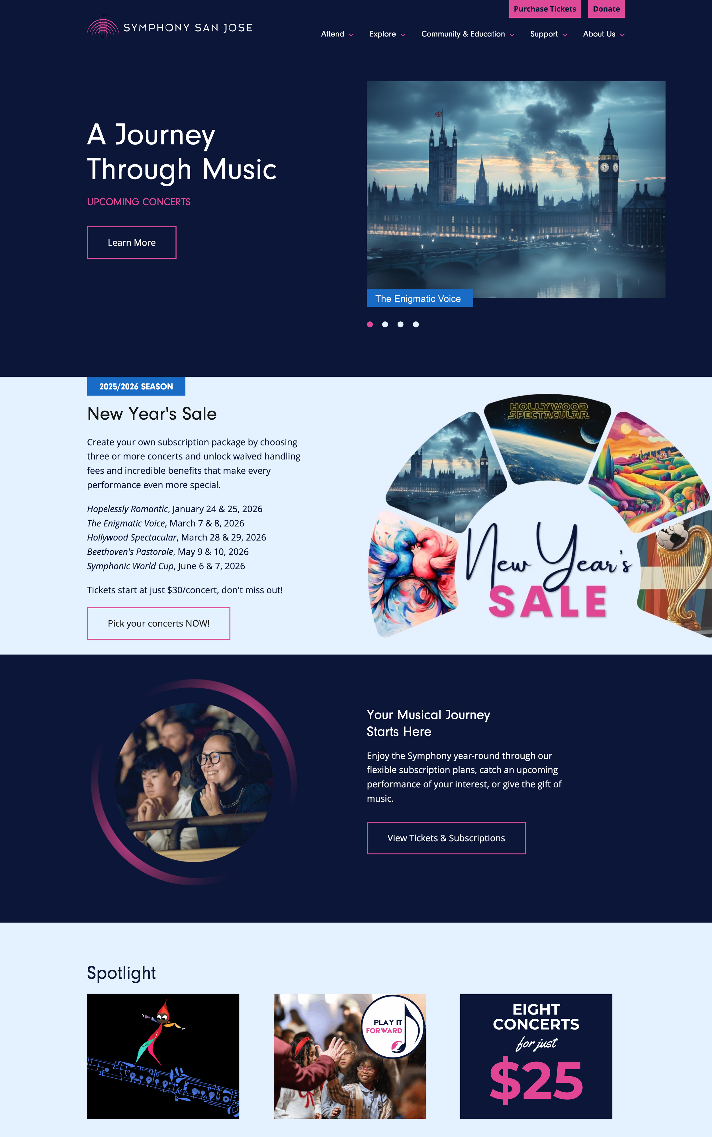 Supported Symphony San Jose’s full rebrand, including a new logo that won the 2024 Gold Addy Award and 2024 Silver Best of Branding Award, and a redesigned website to align with forward-looking community initiatives.
